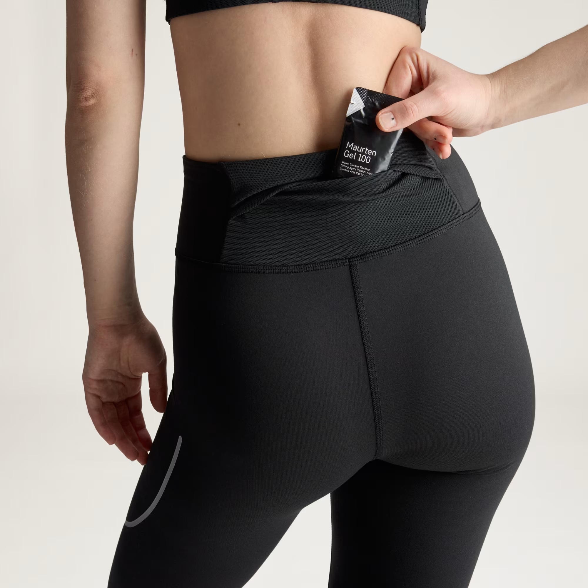 Dar kesim %85 polyester (%100 geri dönüştürülmüş), %15 elastan Anahtar cebi bulunan yüksek bel kemeri CLIMACOOL teknolojisi Ter emici Reflektörlü detaylar Hızlı kuruyan kumaş