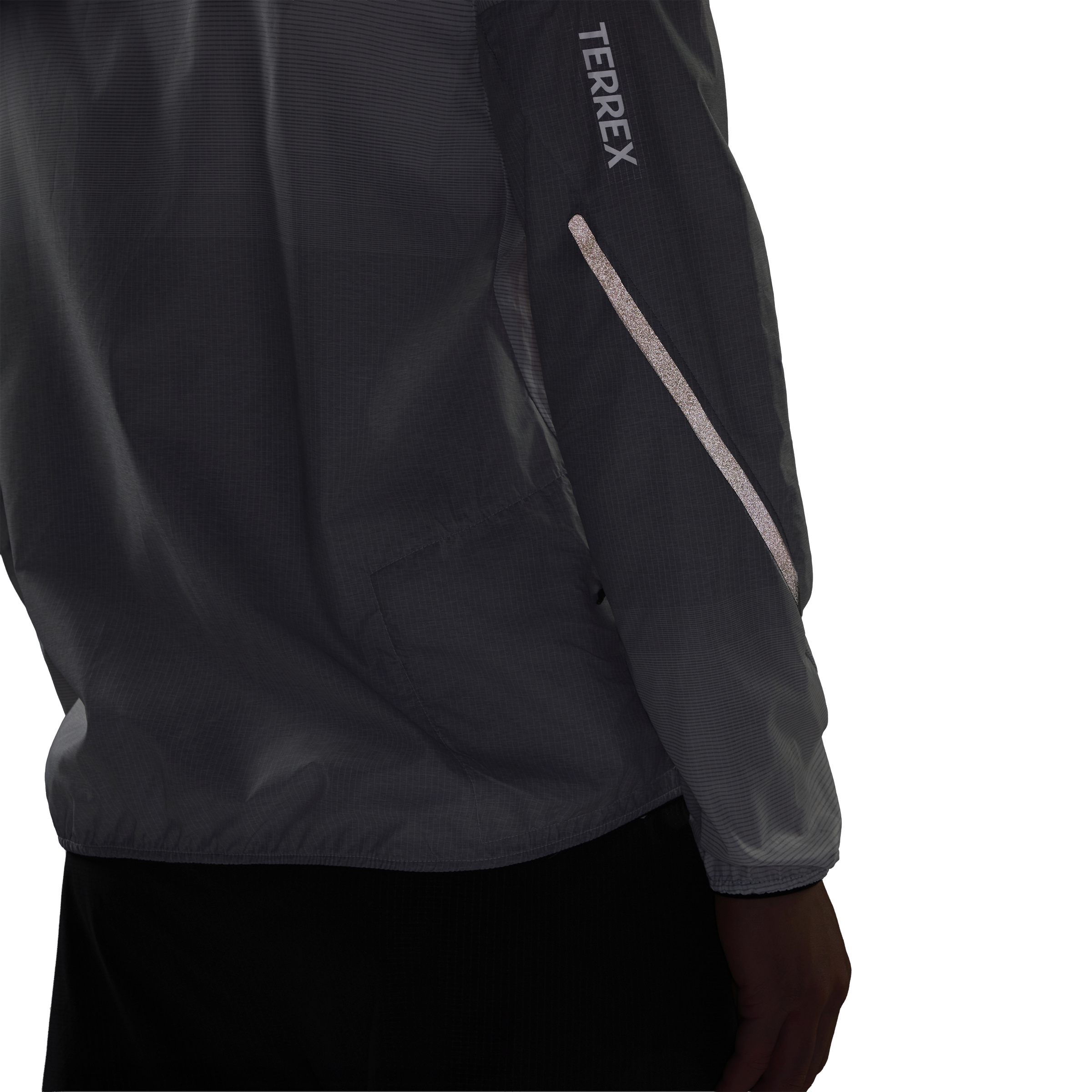 Dar kesim Ön orta kısımda tam fermuarlı %100 polyester (%100 geri dönüştürülmüş) Ripstop kumaş Rüzgara dayanıklı Yumuşak siperlik Elastik bağlama