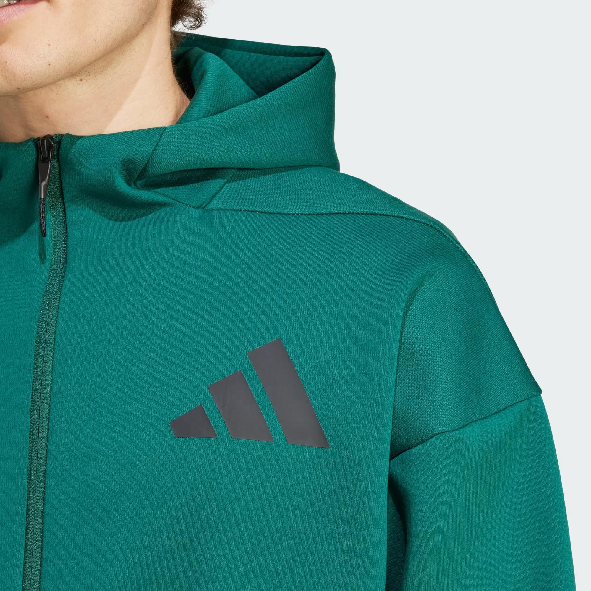 Normal kesim Kapüşonlu tam boy fermuar %57 polyester (geri dönüştürülmüş), %43 pamuk Ön fermuarlı cepler Üç katlı kumaş En az %70 oranında geri dönüştürülmüş ve yenilenebilir içerik içerir