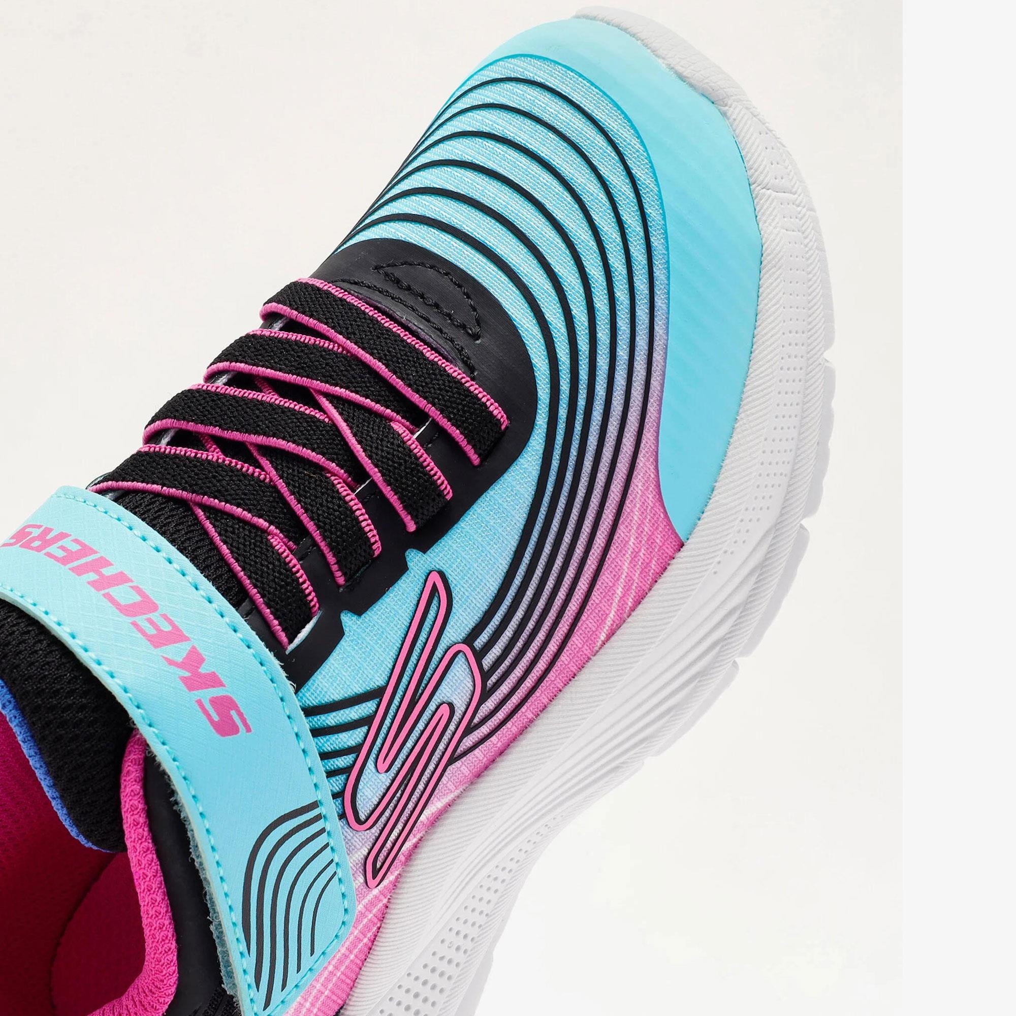 Yastıklamalı, konforlu iç tabana sahiptir. Yer tutuşu sağlayan esnek dış tabanı bulunur. Skechers'ın kolay giyilip çıkarılabilen Adaptif Kapanış özelliği kişiye özel uyum sağlar. Esnek bağcıklı ve ayarlanabilir üst bantlı çok renkli file ve dokunsal baskı kaplama sayaya sahiptir. Topuk yüksekliği 2.54 cm’dir.